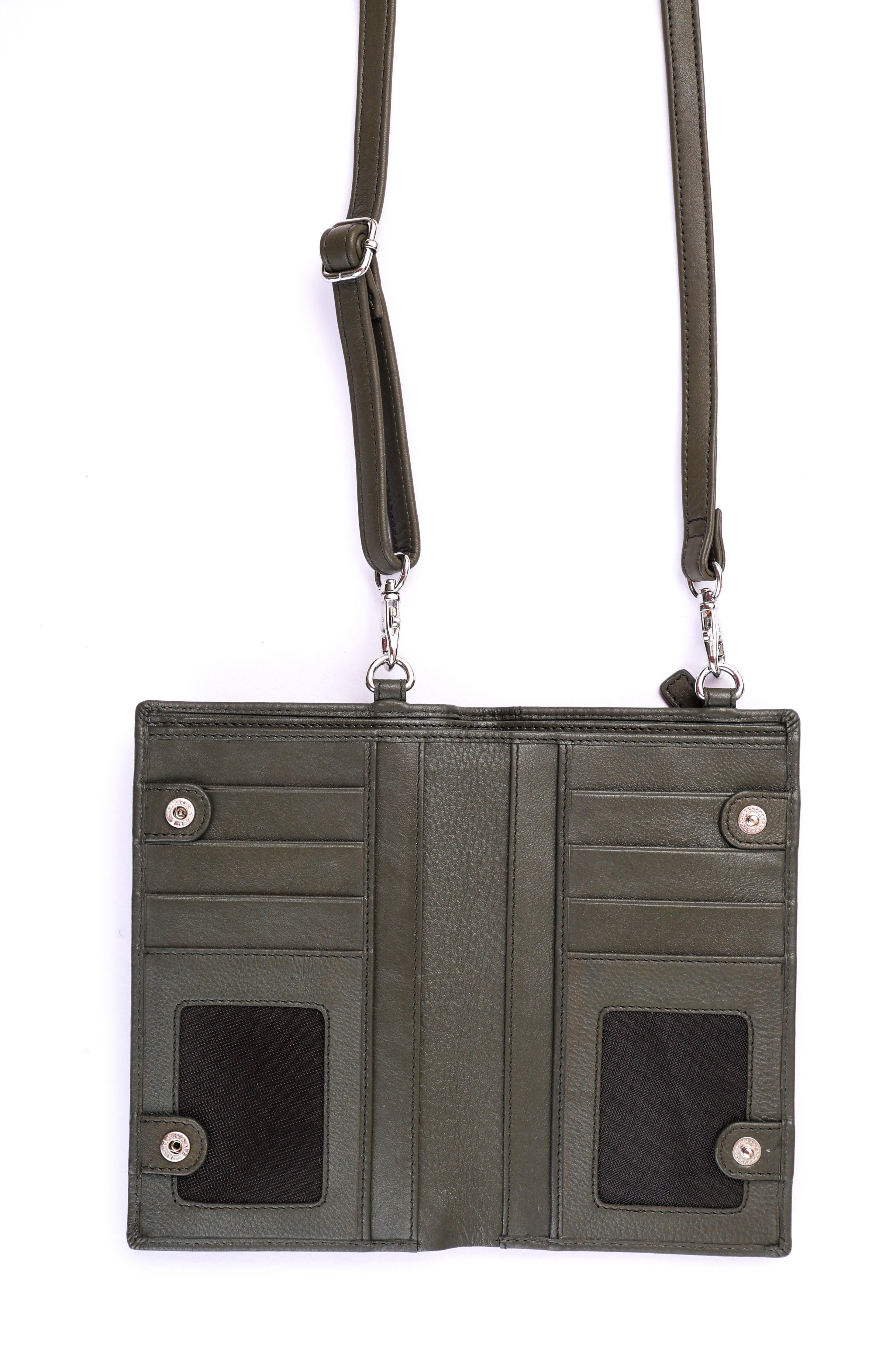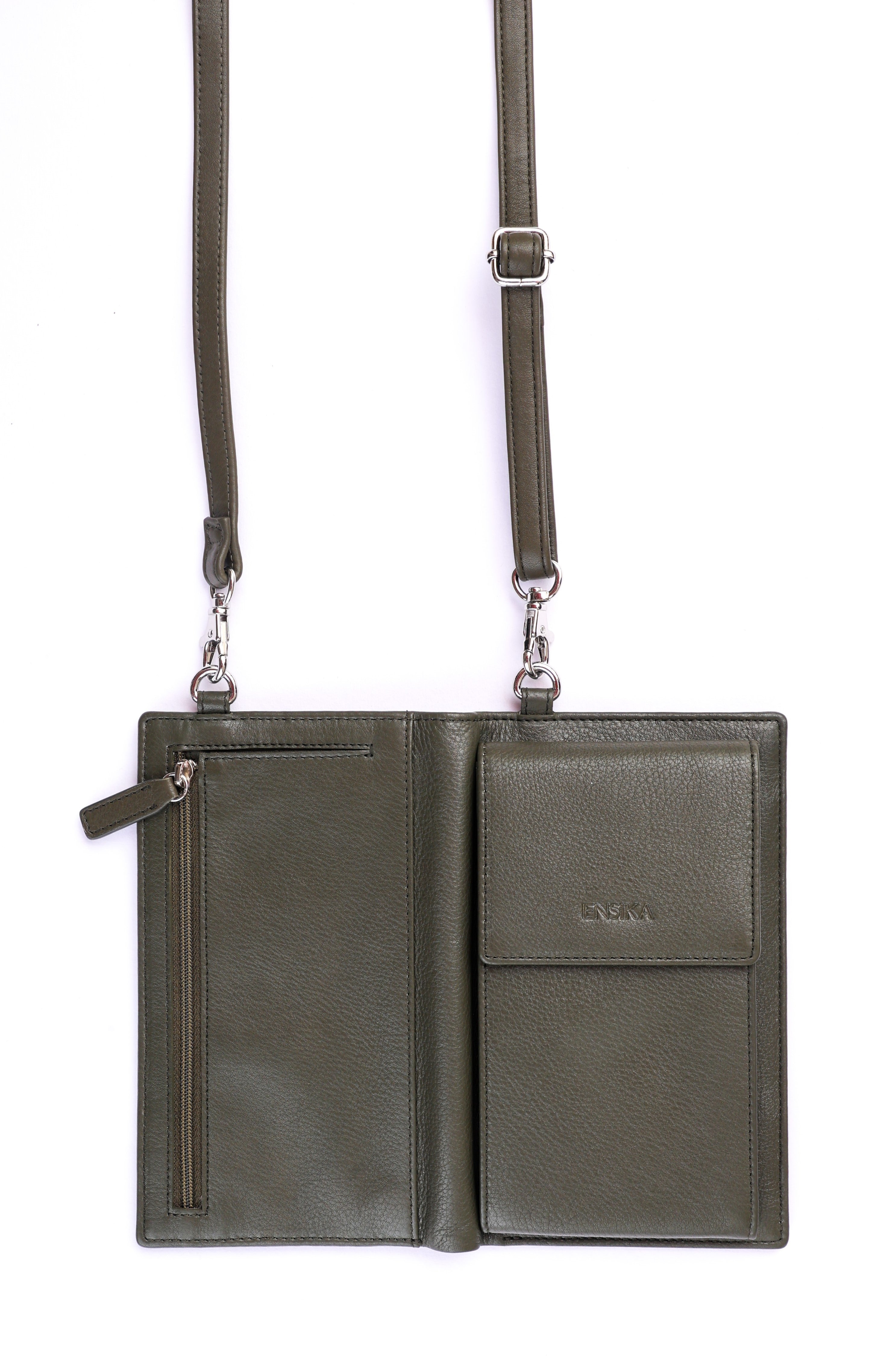 ENSIKA Real Leather Phone Bag with Card Wallet SDB5 Green